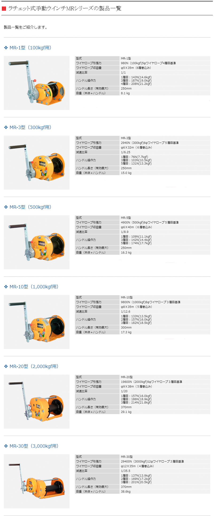 MAXPULL手動絞盤MR-10型(1,000kgf用)