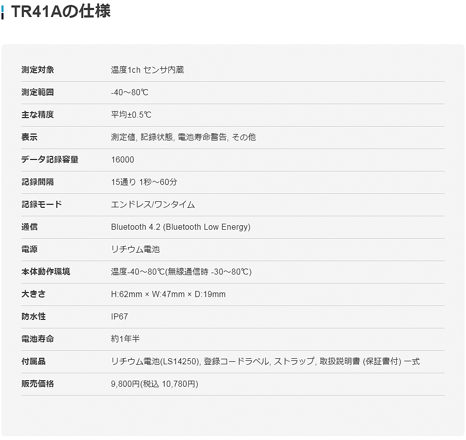 TANDD溫濕度數(shù)據(jù)記錄器TR41A